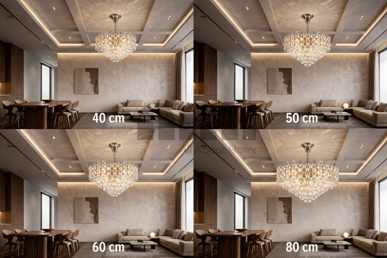 Înălțimea reglabilă permite adaptarea ușoară în funcție de înălțimea tavanului. Este ideal pentru livinguri moderne, dormitoare elegante, holuri sau spații comerciale premium.