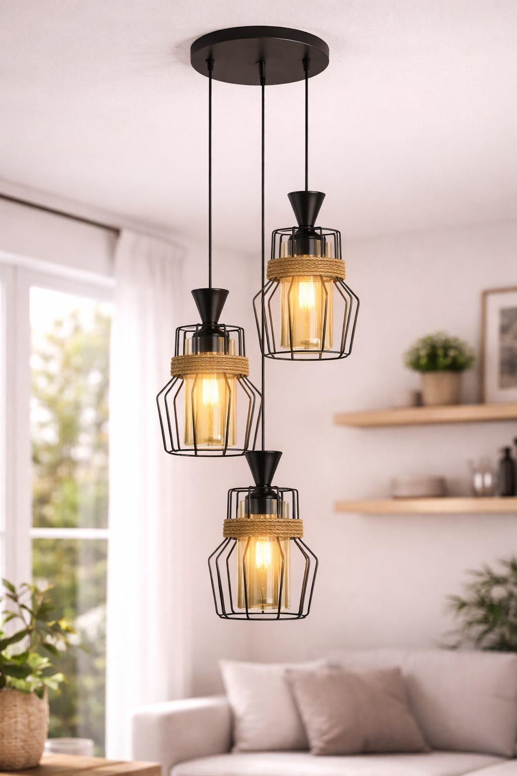 Fiecare pendul oferă o lumină caldă și confortabilă, iar cablul reglabil permite ajustarea înălțimii pentru a se potrivi perfect în orice încăpere. Este ideală pentru iluminarea uniformă a zonei de luat masa, livingului, dormitorului, dressingului sau cafenelelor moderne. Funcționează cu becuri E27, oferind o lumină plăcută și eficientă.