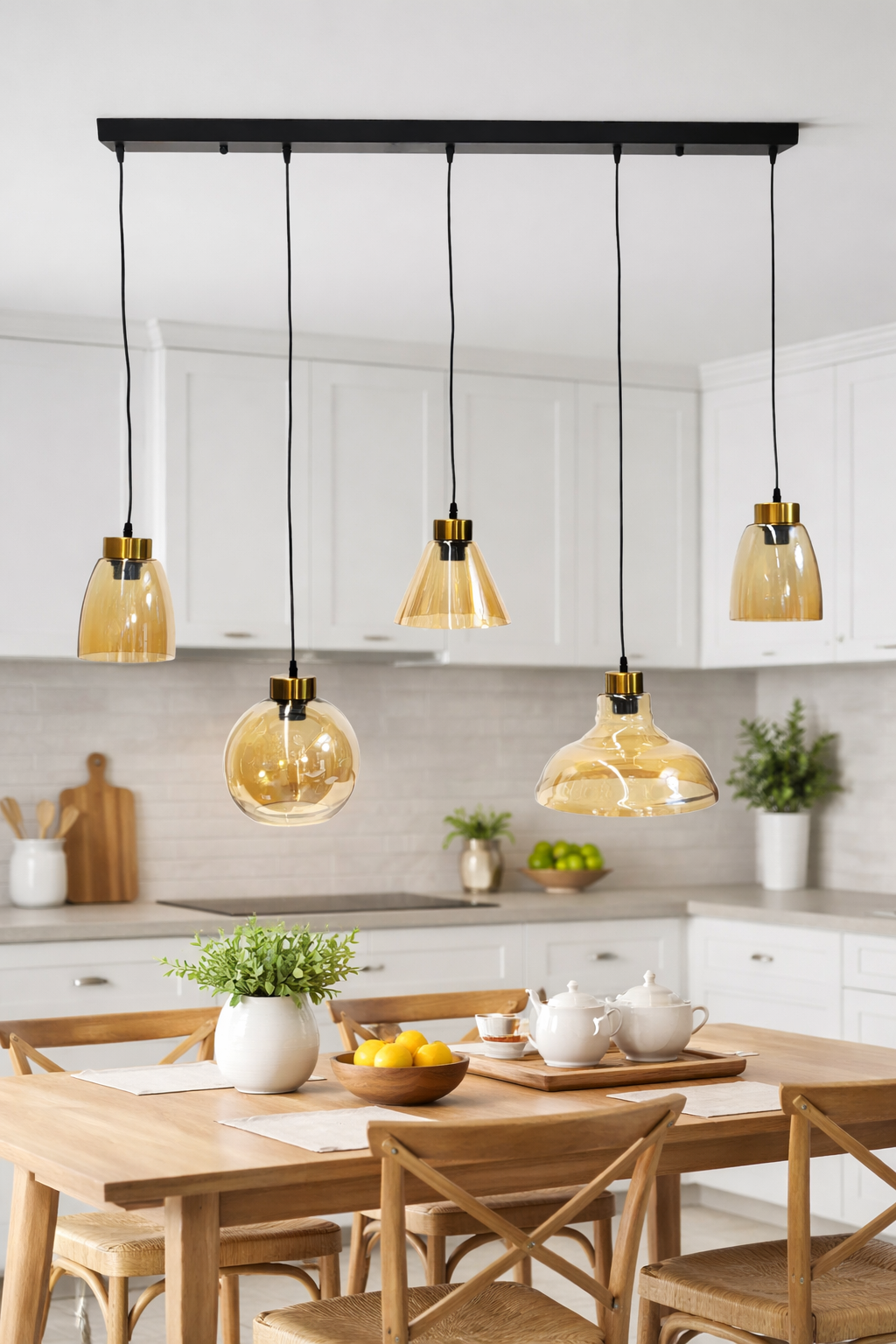 Cablurile au o lungime de 80 cm și sunt reglabile, permițând adaptarea înălțimii în funcție de configurația camerei și de preferințele estetice. Lustra este compatibilă cu becuri E27, oferind libertate în alegerea intensității și temperaturii de culoare pentru a crea atmosfera dorită.