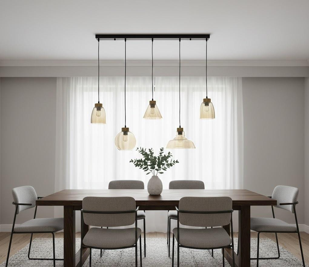 Este o soluție de iluminat potrivită pentru living, dining sau hol, unde îmbină funcționalitatea cu un design decorativ de impact.