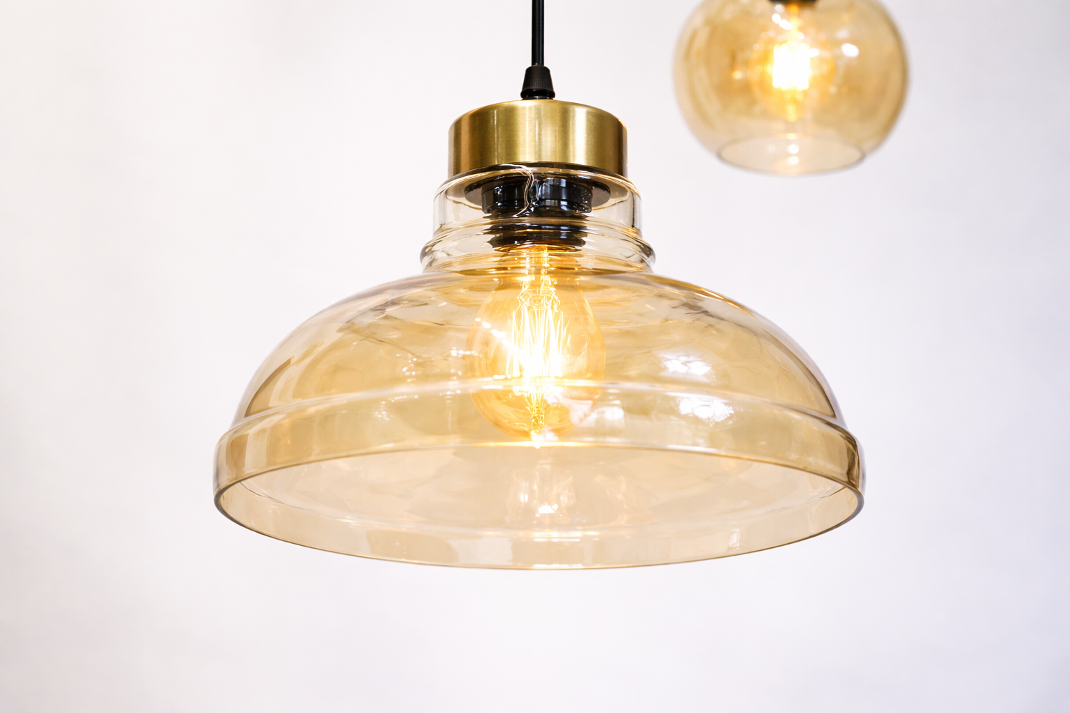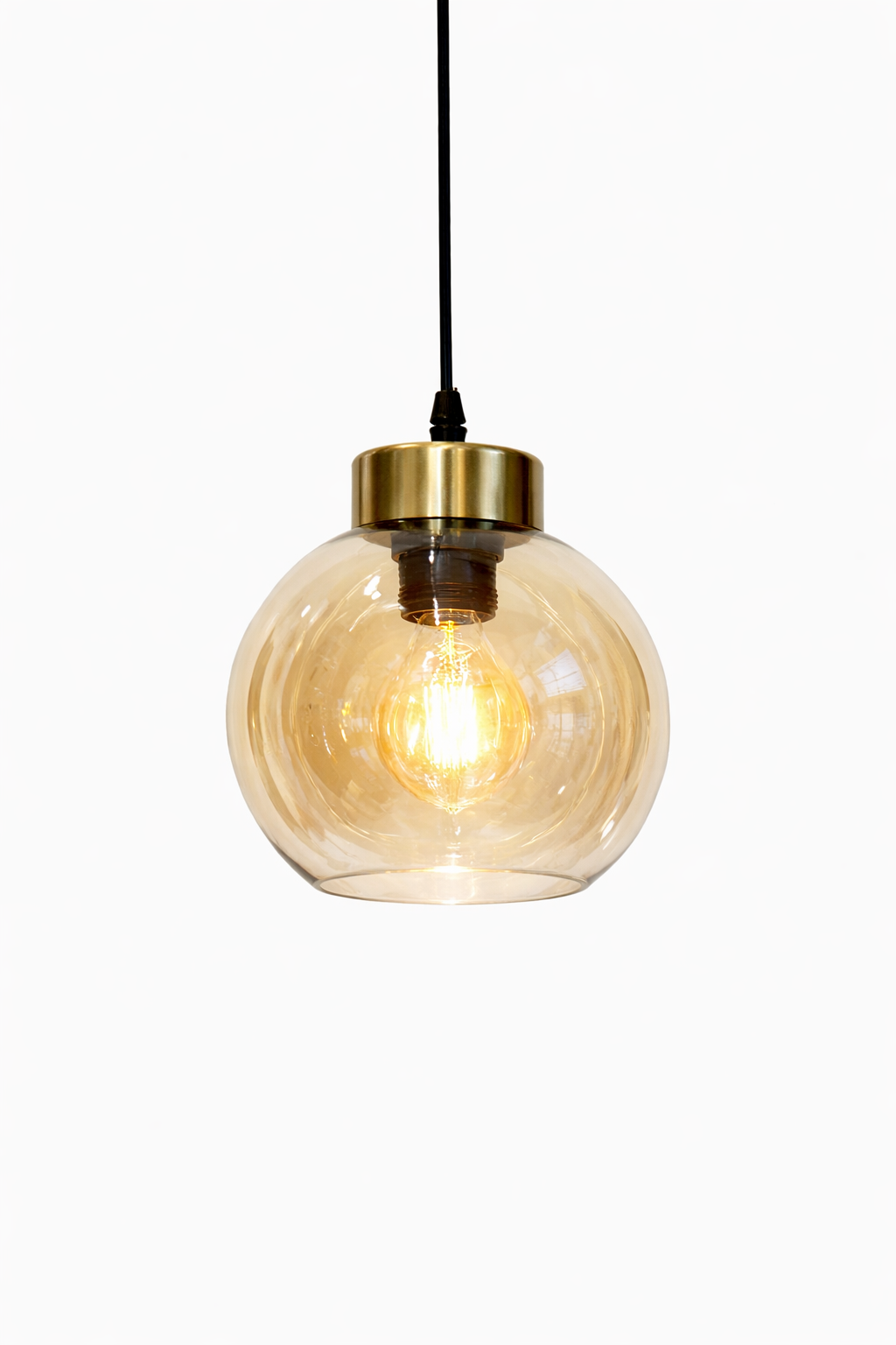 Globurile din sticlă aurie contribuie la difuzarea luminii într-un mod plăcut și decorativ, iar cele 3 socluri E27 oferă libertatea de a alege becurile potrivite în funcție de intensitatea și temperatura de culoare dorită.