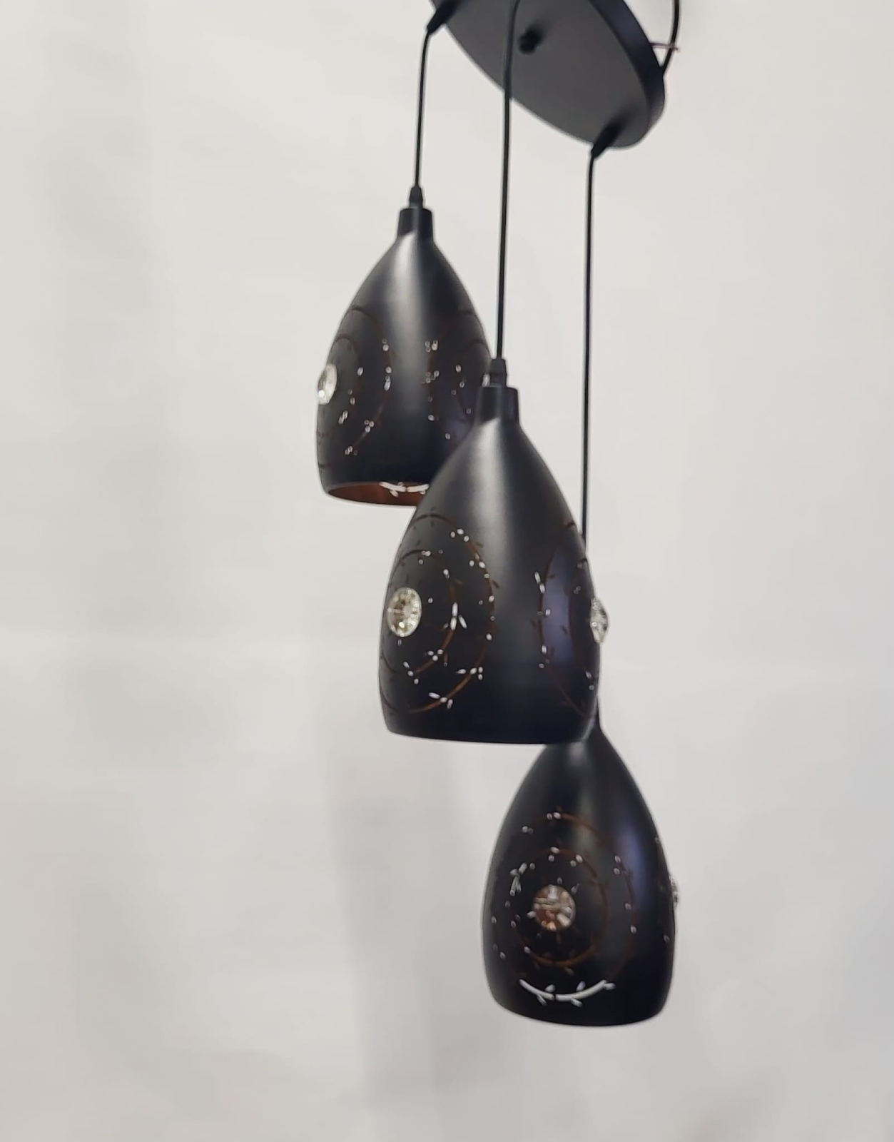 Modelul dispune de 3 pendule reglabile individual, ceea ce permite adaptarea înălțimii în funcție de spațiu și preferințe. În centrul abajurului, detaliile acrilice asemănătoare cristalului adaugă un plus de rafinament, sporind efectul vizual și atmosfera elegantă.