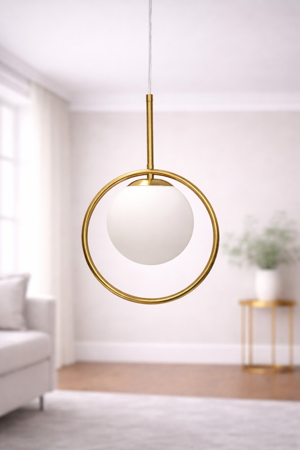 Disponibil în trei variante de culoare și abajur: crom cu abajur alb mat (CH+WH), auriu cu abajur alb mat (GD+WH) și auriu cu abajur amber (GD+AMB), pendulul se adaptează perfect stilului interior dorit. Corpul metalic oferă durabilitate și un aspect contemporan, iar abajurul din sticlă alb mat sau amber difuzează lumina uniform, creând o atmosferă caldă și relaxantă.