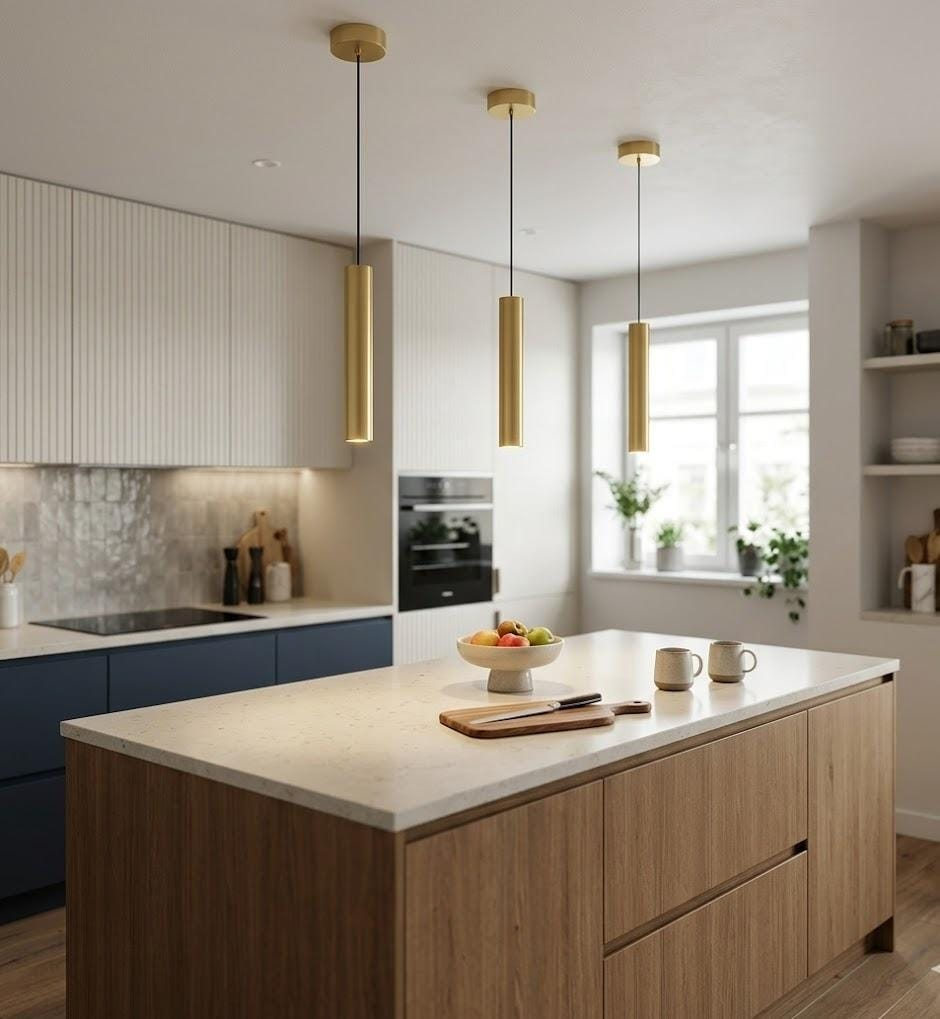 Realizat din aluminiu de calitate, pendulul este completat de un cablu negru discret, care creează un contrast modern și echilibrat. Corpul cilindric, cu o lungime de 40 cm și diametru de 6 cm, oferă o lumină direcționată, ideală pentru zone precum insule de bucătărie, mese de dining sau birouri.
