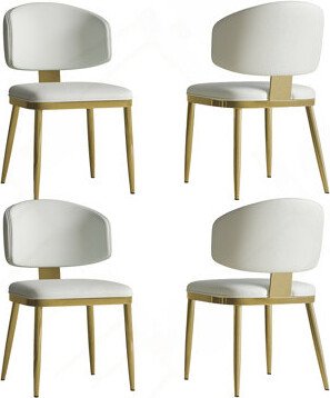 Scaun modern A196 cu tapițerie din piele ecologică și picioare metalice, disponibil în bej cu negru sau alb cu auriu, ideal pentru dining și living.